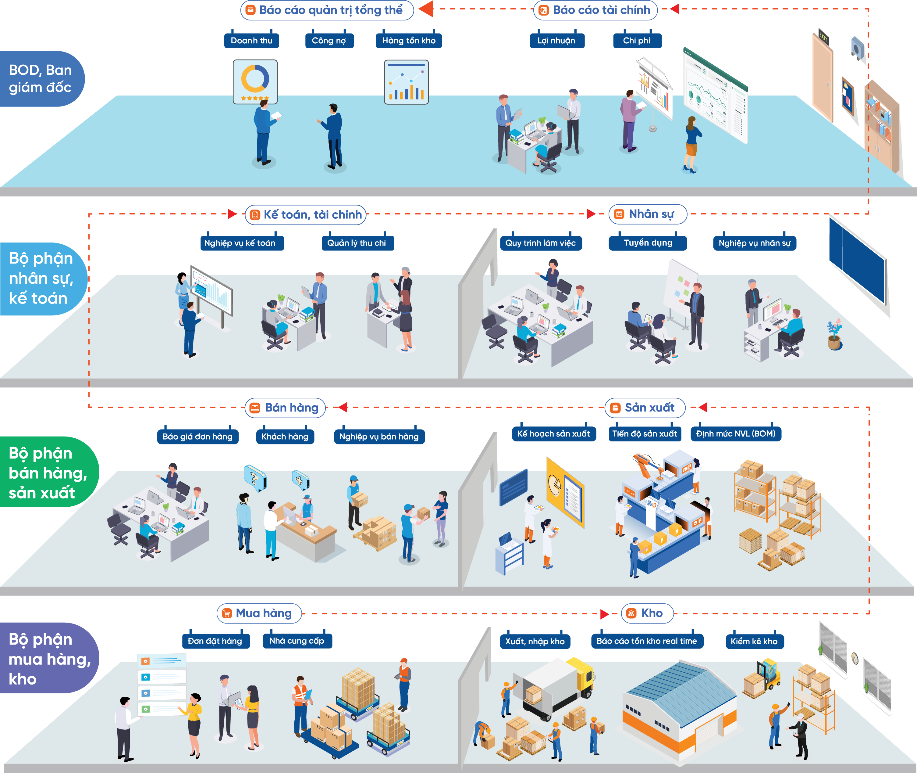 Cung cấp giải pháp quản lý tổng thể dành riêng cho Doanh nghiệp. Hệ thống được xây dựng trên nền tảng điện toán đám mây, vì thế giúp doanh nghiệp tiết kiệm 78% chi phí và thời gian triển khai. Giao diện trực quan, thân thiện, quản trị tài chính nhanh giúp nhà quản trị đưa ra mọi quyết định đúng đắn.